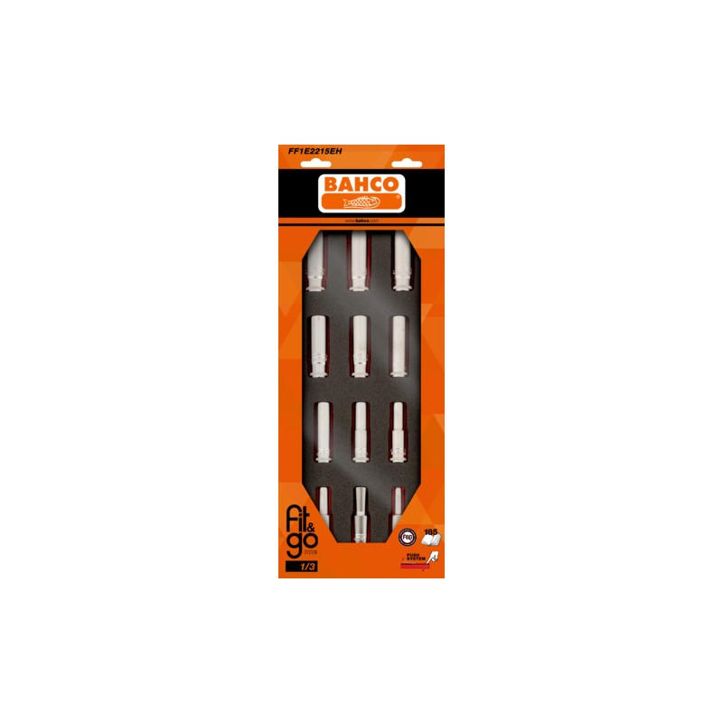 Juego de vasos serie larga de 1/2" en bandeja de foam 1/3 Fit&Go (12 piezas, blíster)